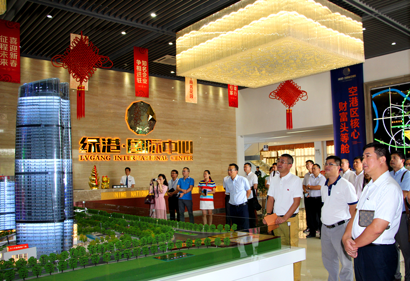 此次活動(dòng)分為兩個(gè)行程,在黨委書(shū)記、董事長(cháng)、總經(jīng)理楊東的帶領(lǐng)下,一行人員首先來(lái)到綠港國際中心售樓部進(jìn)行參觀(guān)。通過(guò)觀(guān)看項目沙盤(pán)和商業(yè)宣傳片,參觀(guān)人員對經(jīng)開(kāi)區的區位優(yōu)勢、產(chǎn)業(yè)特點(diǎn)、政策優(yōu)惠等有了較為深入的了解,同時(shí)也對綠港?國際中心項目及綠港集團建設的其他廠(chǎng)房項目產(chǎn)生了濃厚的興趣和合作意向。