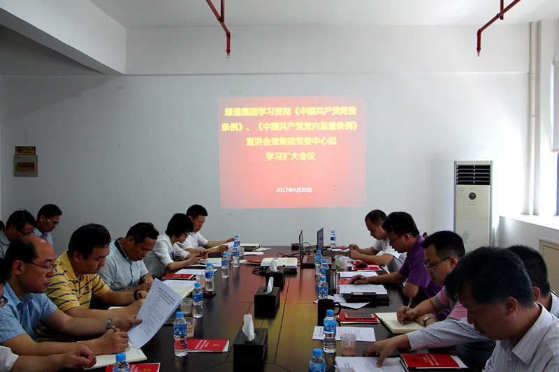 為進(jìn)一步加強廉政文化建設,不斷提高黨員干部廉潔從業(yè)意識,推進(jìn)廉潔從業(yè)教育工作,以黨風(fēng)廉潔建設新成效促進(jìn)綠港集團健康發(fā)展,4月20日上午,綠港集團黨委召開(kāi)學(xué)習貫徹《中國共產(chǎn)黨問(wèn)責條例》和《中國共產(chǎn)黨黨內監督條例》(以下簡(jiǎn)稱(chēng)“兩部條例”)宣講報告會(huì )暨中心組學(xué)習擴大會(huì )議,會(huì )議由綠港集團黨組書(shū)記、董事長(cháng)楊東主持,經(jīng)開(kāi)區紀工委派駐國有公司紀檢組組長(cháng)李云岳就“兩部條例”進(jìn)行了宣講,綠港集團全體班子成員、集團本部中層以上管理人員、子公司領(lǐng)導班子約50人參加會(huì )議。