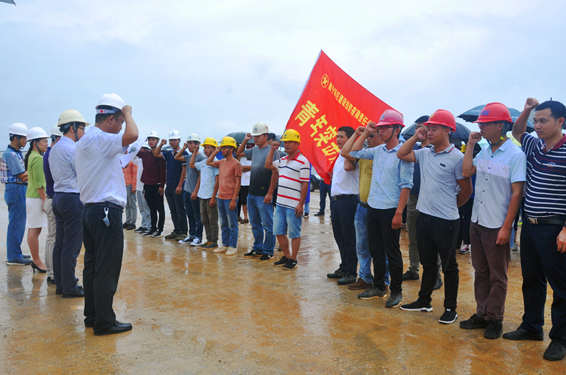 當天,細雨蒙蒙,綠港集團黨委書(shū)記、董事長(cháng)、總經(jīng)理龔國強在項目現場(chǎng)給參建黨員授予了“黨員先鋒隊”旗幟,給參建團員青年授予了“青年突擊隊”旗幟,綠港集團副總經(jīng)理、工會(huì )主席黃麗琴給吳圩空港經(jīng)濟區重點(diǎn)項目推進(jìn)組授予了“工人先鋒號”錦旗,激勵廣大黨員干部青年同志們要以強烈的政治責任感、立足本職崗位,充分發(fā)揚不怕吃苦、勇于負重,敢打硬仗、能打硬仗的“綠港鐵軍”優(yōu)良傳統,為吳圩空港經(jīng)濟區項目建設做貢獻。