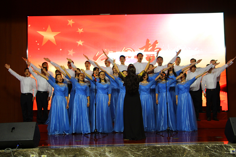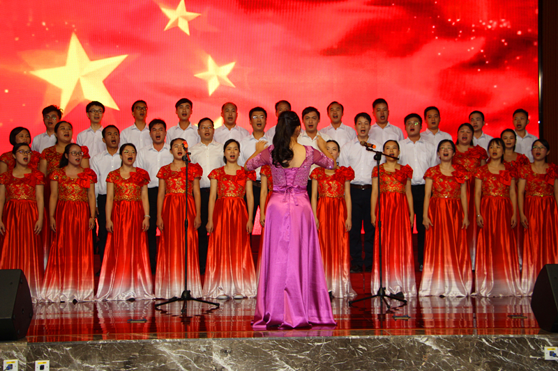 集團領(lǐng)導班子成員、總經(jīng)理助理上臺演唱《心會(huì )跟愛(ài)一起走》