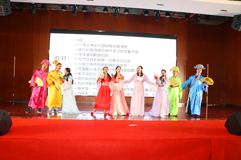 隨后,來(lái)自集團工程管理部林重胤以及嘉通公司潘青青甜蜜獻唱《告白氣球》,讓大家感受到了愛(ài)情的絲絲美好。嘉通公司的《夸夸咱公司》,用三句半的表演形式唱出了綠港集團濃濃的企業(yè)文化情愫,也展現了綠港員工積極、拼搏、向上的精神?!段乙鼐G港》、《聲臨其境》、《好運來(lái)》、《愛(ài)》、《好嗨喲》等多個(gè)節目在觀(guān)眾的熱情掌聲中聯(lián)袂奉上一場(chǎng)精彩演出,整個(gè)活動(dòng)歌聲笑聲、熱烈的掌聲匯成了歡樂(lè )的海洋。集團營(yíng)銷(xiāo)管理中心的《四小天王齊賀歲》以及集團計劃運營(yíng)部、紀檢監察審計部、安全監督部聯(lián)合帶來(lái)的《蒙面唱將猜猜猜》將活動(dòng)推向高潮,現場(chǎng)掌聲不斷??彀濉毒G港贊歌》道出了綠港集團成立五載,綠港人用智慧和汗水所取得的成效。最后,集團領(lǐng)導班子壓軸出場(chǎng),帶來(lái)詩(shī)歌朗誦《相信未來(lái)》,贏(yíng)得陣陣掌聲,讓大家堅定了信心、鼓足了干勁,對美好生活更加熱愛(ài)和向往。