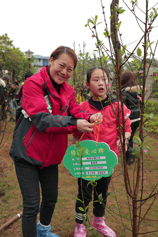 當天,綠港集團還舉行了植樹(shù)護綠活動(dòng)。在細雨紛飛中,家長(cháng)和孩子們一起動(dòng)手,分工協(xié)作。大家栽得認真,干得賣(mài)力,揮鍬鏟土、挖坑、栽樹(shù)、蓋土、澆水,各個(gè)環(huán)節銜接有序,配合默契。整個(gè)植樹(shù)活動(dòng)現場(chǎng)熱火朝天,歡聲笑語(yǔ)不絕于耳。經(jīng)過(guò)一個(gè)多小時(shí)的揮汗奮戰,上百棵小樹(shù)苗整齊的“站”在了綠港·國際中心桃樹(shù)林中。放眼望去,樹(shù)苗迎風(fēng)挺立、搖曳生姿,大家看著(zhù)這一片自己親手種下的樹(shù)苗,無(wú)不露出幸福的笑容,紛紛與小樹(shù)苗合影。綠港集團下屬榮鑫公司副總經(jīng)理唐欽月表示:“植樹(shù)造林是一項利于當代、造福子孫的偉大工程。綠港集團成立五年來(lái),每年都積極組織員工開(kāi)展義務(wù)植樹(shù)造林活動(dòng)。今天我們帶上孩子一起參加義務(wù)植樹(shù)活動(dòng),不僅增強了職工們生態(tài)環(huán)境保護的責任感,也給孩子們樹(shù)立了關(guān)心、愛(ài)護以及主動(dòng)參與家園建設的意識和榜樣?!?nbsp;