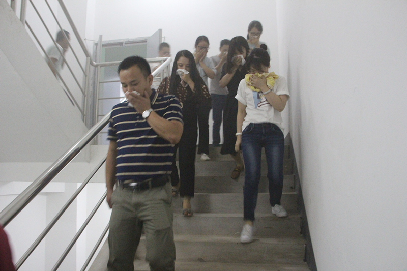 當天下午15:00,隨著(zhù)模擬煙霧的放出,模擬火災警報拉響,各參加火災疏散演習的人員按照既定的撤離路線(xiàn),在工作人員的指揮下迅速撤離“事故”現場(chǎng),撤離過(guò)程中大家紛紛用濕毛巾捂住自己的口鼻,弓著(zhù)腰沿著(zhù)墻壁迅速撤離到一樓安全地點(diǎn),整個(gè)撤離過(guò)程不到2分鐘。經(jīng)過(guò)周密的部署和安排,疏散演示實(shí)現了安全、有序、及時(shí)撤離的預期目標。消防培訓老師對演練效果給予充分肯定,并圍繞消防安全“四個(gè)能力”、“四懂四會(huì )”為大家講解了消防知識,詳細介紹了如何撲滅初期火災及一些注意事項,并重點(diǎn)講解了在辦公人員密集的場(chǎng)所發(fā)生火災時(shí)如何逃生的知識。