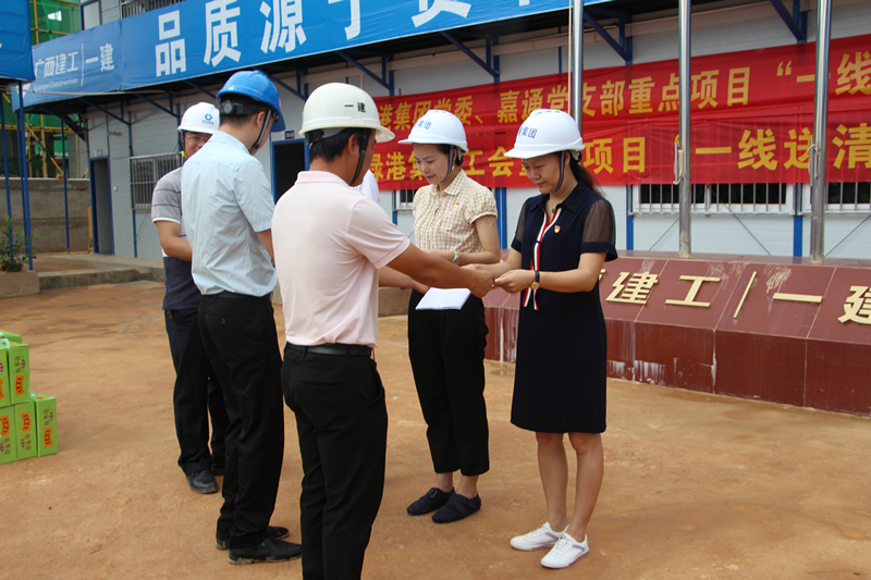 7月4日一早,集團慰問(wèn)工作小組在集團公司副總經(jīng)理陸?hù)啾?、黃克和集團副總經(jīng)理、工會(huì )主席黃麗琴的率領(lǐng)下,來(lái)到了吳圩鎮“綠港·云海灣”項目工地。綠港?云海灣項目由嘉通公司重點(diǎn)打造的開(kāi)發(fā)建設高端住宅社區,項目位于吳圩空港經(jīng)濟區的核心位置,項目總投資額3.8億元,于今年3月正式啟動(dòng)。目前,項目商業(yè)區已開(kāi)展基礎施工,別墅區一期施工6棟已結構封頂,小高層區正在進(jìn)行土方開(kāi)挖工作。