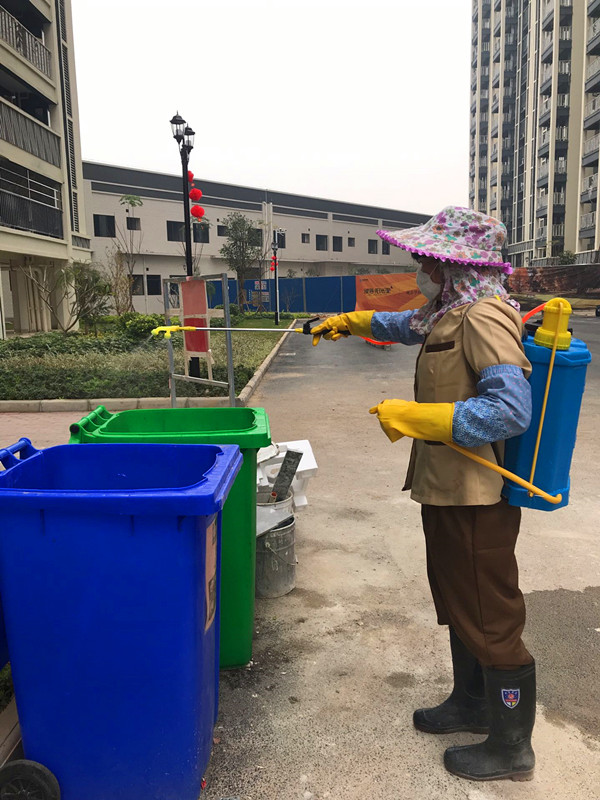 萬(wàn)方物業(yè)公司正在對園區進(jìn)行消毒消殺