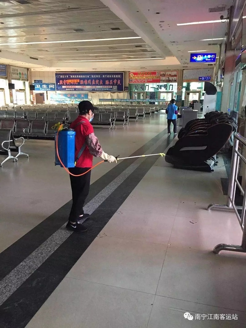 ▲江南客運站對站內座椅等相關(guān)設施進(jìn)行消殺。 (江南客運站供圖)