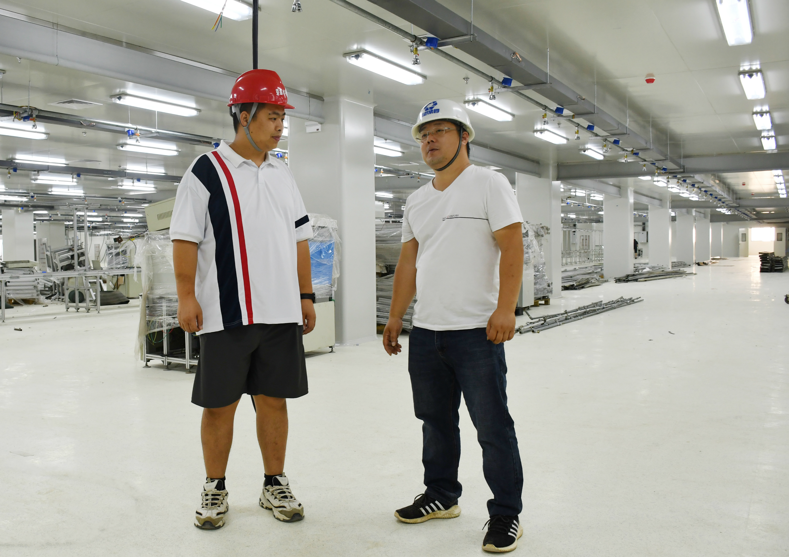 項目開(kāi)工建設后,他時(shí)常召集項目成員研究探討優(yōu)質(zhì)高效的施工技術(shù)、多工種交叉施工作業(yè)等施工方案,“5+2”、“白加黑”地趕工建設,僅用60天,確保了項目第一階段9號廠(chǎng)房1、2層裝修施工任務(wù)于2018年6月28日圓滿(mǎn)完成。在2018年9月10日的瑞聲廠(chǎng)區舉行項目投產(chǎn)儀式,南寧市委王小東書(shū)記宣布項目正式投產(chǎn)。王小東書(shū)記、瑞聲公司潘董事長(cháng)都對項目建設工作給予高度評價(jià),稱(chēng)其為“南寧速度”。