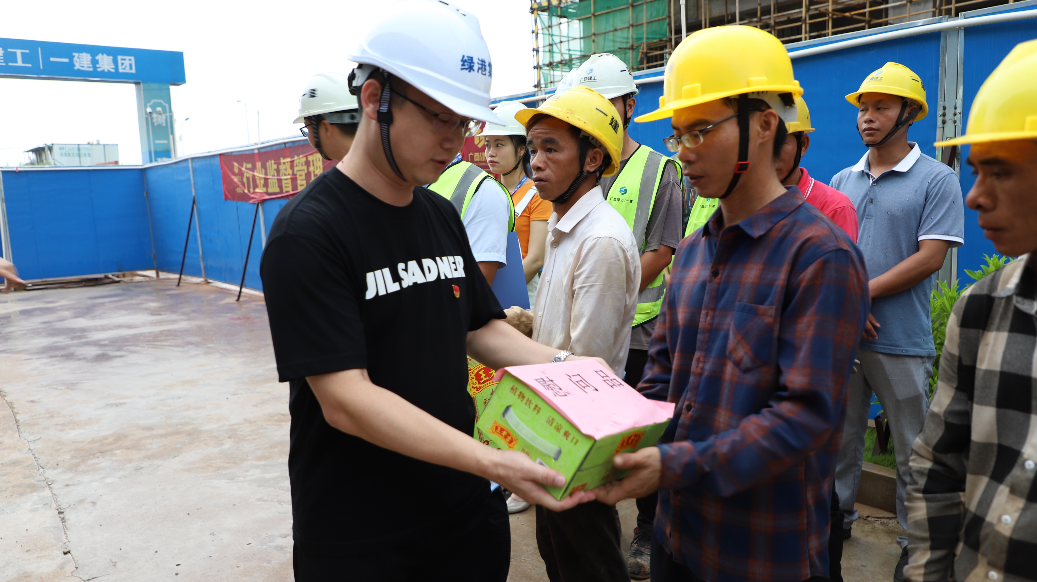 集團黨委書(shū)記、董事長(cháng)龔國強為工地的一線(xiàn)職工送上清涼慰問(wèn)品
