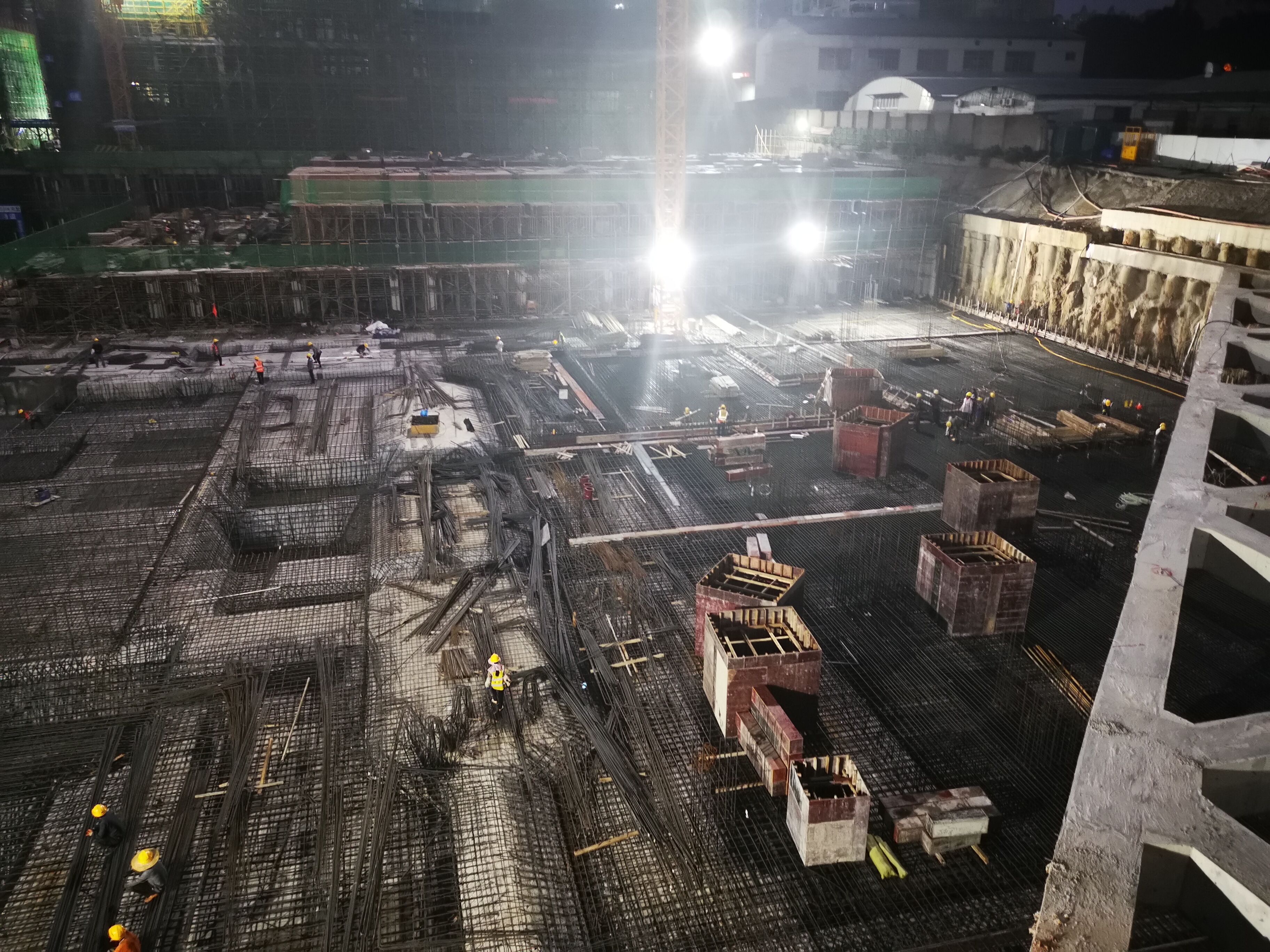 在完成支護樁施工及土方外運工作后,接下來(lái)就是緊張的基礎及地下室施工,在剩下不到40天的時(shí)間里完成兩層地下室施工,這是一場(chǎng)與時(shí)間賽跑的大戰。推進(jìn)小組全體成員頂住壓力,緊盯5月31日預售節點(diǎn)目標,開(kāi)足馬力全力推進(jìn)項目建設加速跑。推進(jìn)小組實(shí)行每天碰頭會(huì ),每周安全生產(chǎn)推進(jìn)會(huì ),按照工期節點(diǎn)倒排施工計劃,層層細化每日施工任務(wù),持續加強內外溝通。依據工程進(jìn)展情況,督促施工單位同時(shí)展開(kāi)多個(gè)作業(yè)面,增加施工人員及機械設備的投入,采取倒班等措施搶回時(shí)間,保證施工現場(chǎng)做到“見(jiàn)縫插針、動(dòng)態(tài)管控”。經(jīng)過(guò)項目推進(jìn)小組及參建各方2個(gè)多月的日夜奮戰,項目8#、6#樓于4月12日、5月13日提前完成主體結構封頂;3#樓5月27日提前完成±0.00層達到預售節點(diǎn);在臨時(shí)增加工程量的情況下, 1#樓于6月5日完成集團公司設定的項目預售節點(diǎn)攻堅目標。