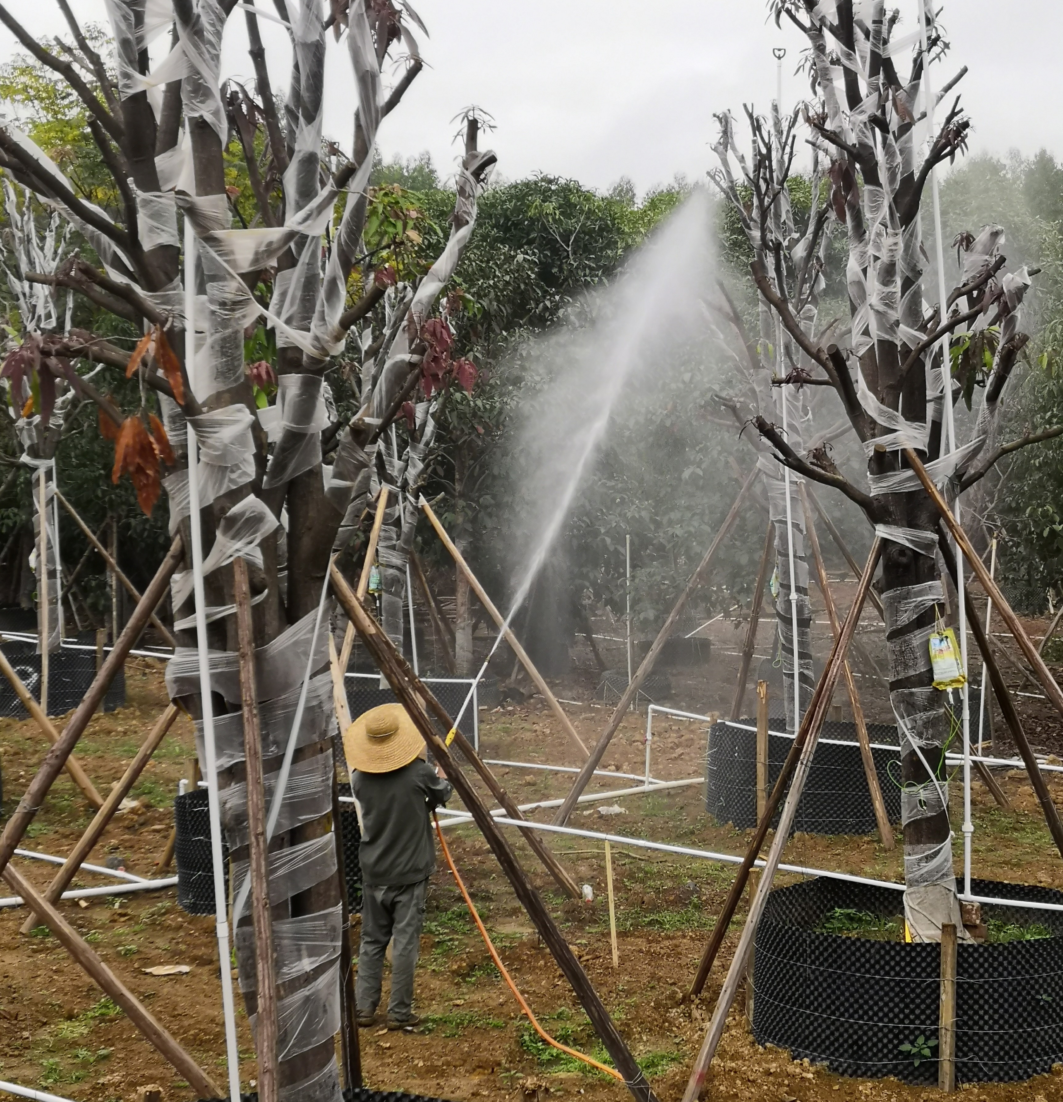 針對影響扁桃移植存活率的主要原因,QC小組具體采取了以下措施:一是保留扁桃骨架,確保樹(shù)形完整,截枝時(shí)一次性垂直切割并處理好傷口;二是采用保水保溫性薄膜,間隔性覆蓋扁桃80%的主要軀干,預留部分區域確保透氣性;三是在高溫多雨季節加大“高效氯氰菊酯”等預防性藥物的噴灑量和噴灑次數,并做好病蟲(chóng)害的監控和動(dòng)態(tài)防治;四是種植前對場(chǎng)地進(jìn)行尿素及復合肥的噴施和翻耕,種植后施放生根劑,并持續對扁桃溫濕度、土壤PH值進(jìn)行實(shí)施監測,適時(shí)追肥,調節土壤至偏酸性。