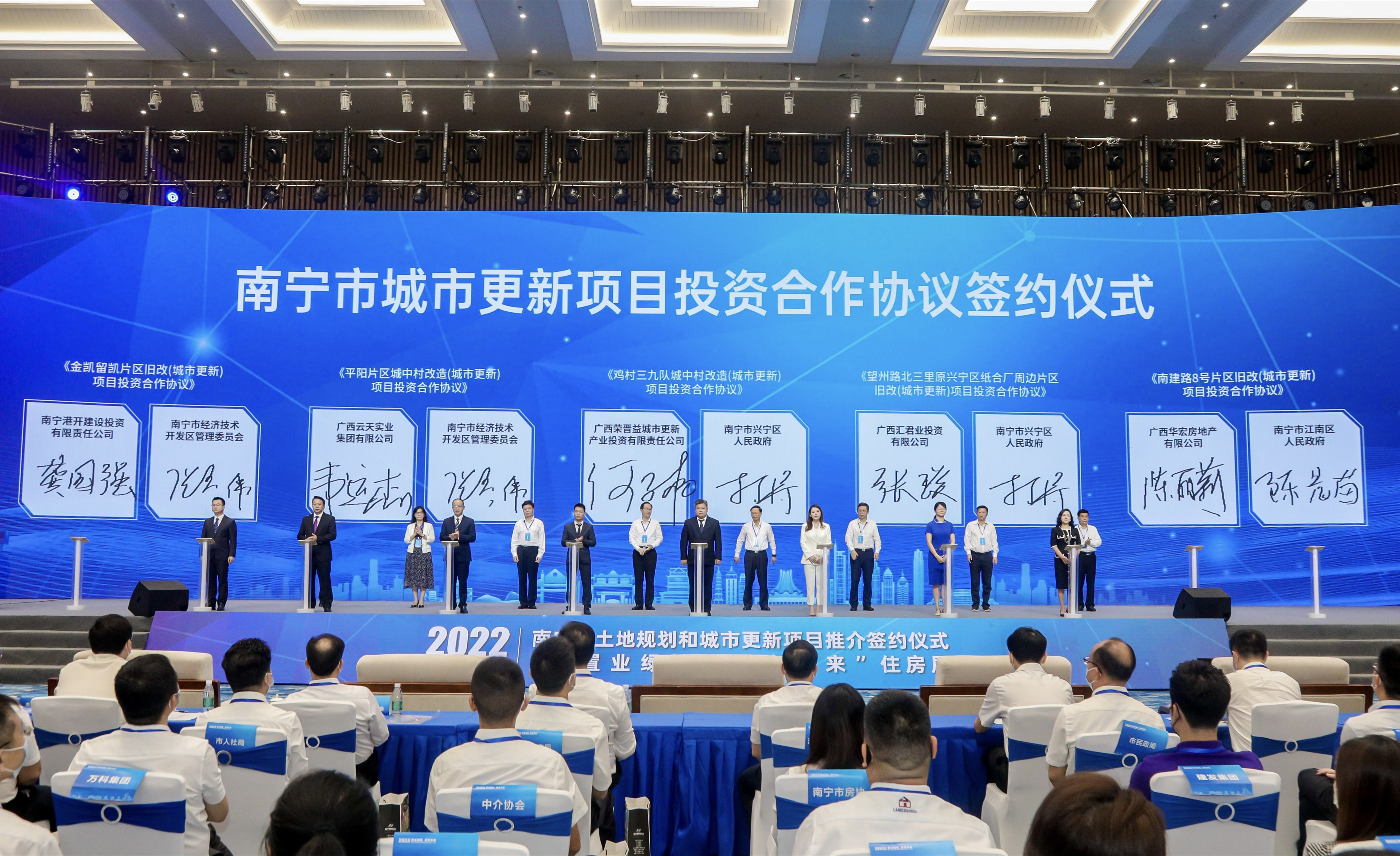 6月18日上午,2022年南寧市土地規劃和城市更新項目推介簽約儀式暨“置業(yè)綠城 邕有未來(lái)”住房展開(kāi)幕式于南寧國際會(huì )展中心金桂花廳舉行。綠港集團下屬控股子公司南寧港開(kāi)建設投資有限責任公司(簡(jiǎn)稱(chēng)港開(kāi)公司)受邀出席活動(dòng),綠港集團黨委書(shū)記、董事長(cháng)龔國強代表港開(kāi)公司與經(jīng)開(kāi)區管委會(huì )簽訂《金凱留凱片區舊城改造(城市更新)項目投資合作協(xié)議》,成為金凱留凱片區舊城改造(城市更新)項目的土地熟化投資人。這標志著(zhù)金凱留凱片區舊城改造項目正式進(jìn)入實(shí)質(zhì)性實(shí)施階段,助力經(jīng)開(kāi)區舊城改造進(jìn)程再次邁上“加速度”的新臺階。