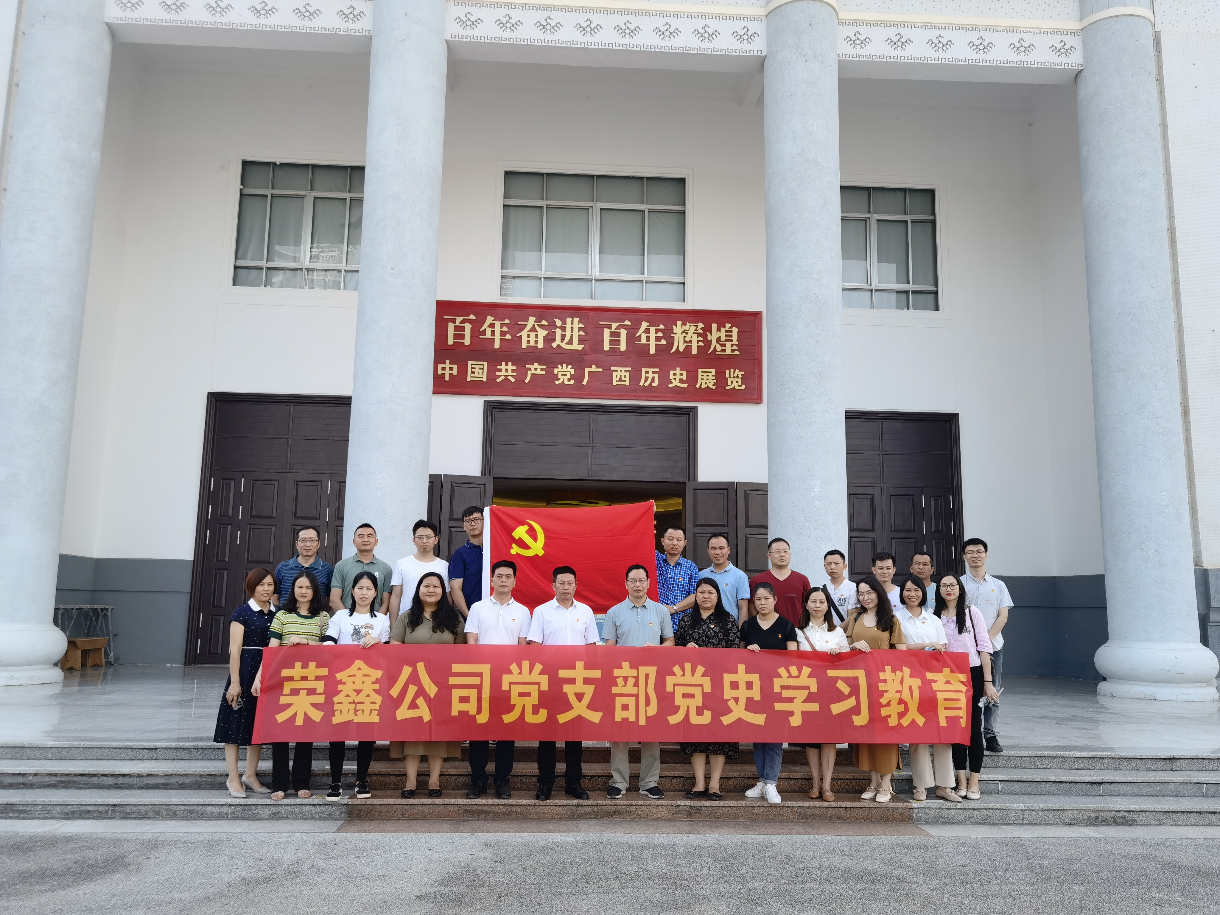 6月24日,建黨101周年前夕,中國共產(chǎn)黨廣西歷史展覽開(kāi)展一周年之際,為深入貫徹落實(shí)習近平總書(shū)記視察廣西“4·27”重要講話(huà)精神,貫徹落實(shí)自治區第十二次黨代會(huì )、自治區黨委第十二屆二次全會(huì )和南寧市第十三次黨代會(huì )精神,常態(tài)化開(kāi)展好黨史學(xué)習教育,綠港集團黨委下屬榮鑫公司黨支部組織支部全體黨員到廣西展覽館開(kāi)展“百年奮斗 百年輝煌”主題黨日活動(dòng),共同參觀(guān)了中國共產(chǎn)黨廣西歷史展覽和廣西脫貧攻堅成就展。