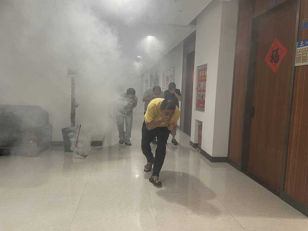 隨后,全體人員轉移至模擬火災事故現場(chǎng),進(jìn)行現場(chǎng)實(shí)操演練。先后體驗了建筑物煙霧逃生、滅火器使用等綜合演練項目。全體員工的安全意識和應急處置能力得到了進(jìn)一步提升。
